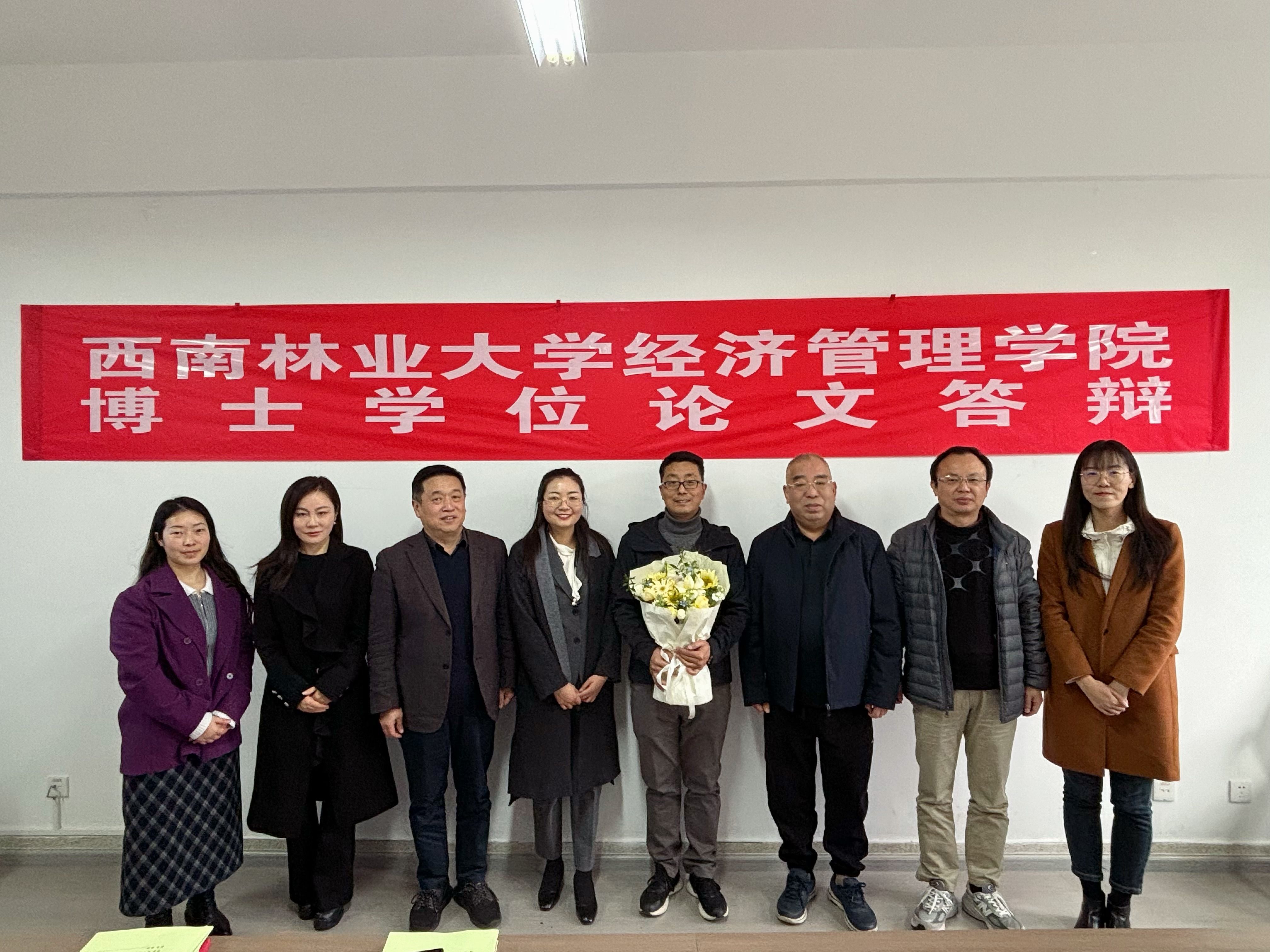 2025年11月19日,农林经济管理专业首位博士研究生文枚学位论文答辩在公司303会议室顺利举行。答辩委员会主席由北京林业大学陈建成教授担任,委员包括云南财经大学熊德平教授、杨增雄教授、李亚波教授以及昆明理工大学冯朝睿教授。