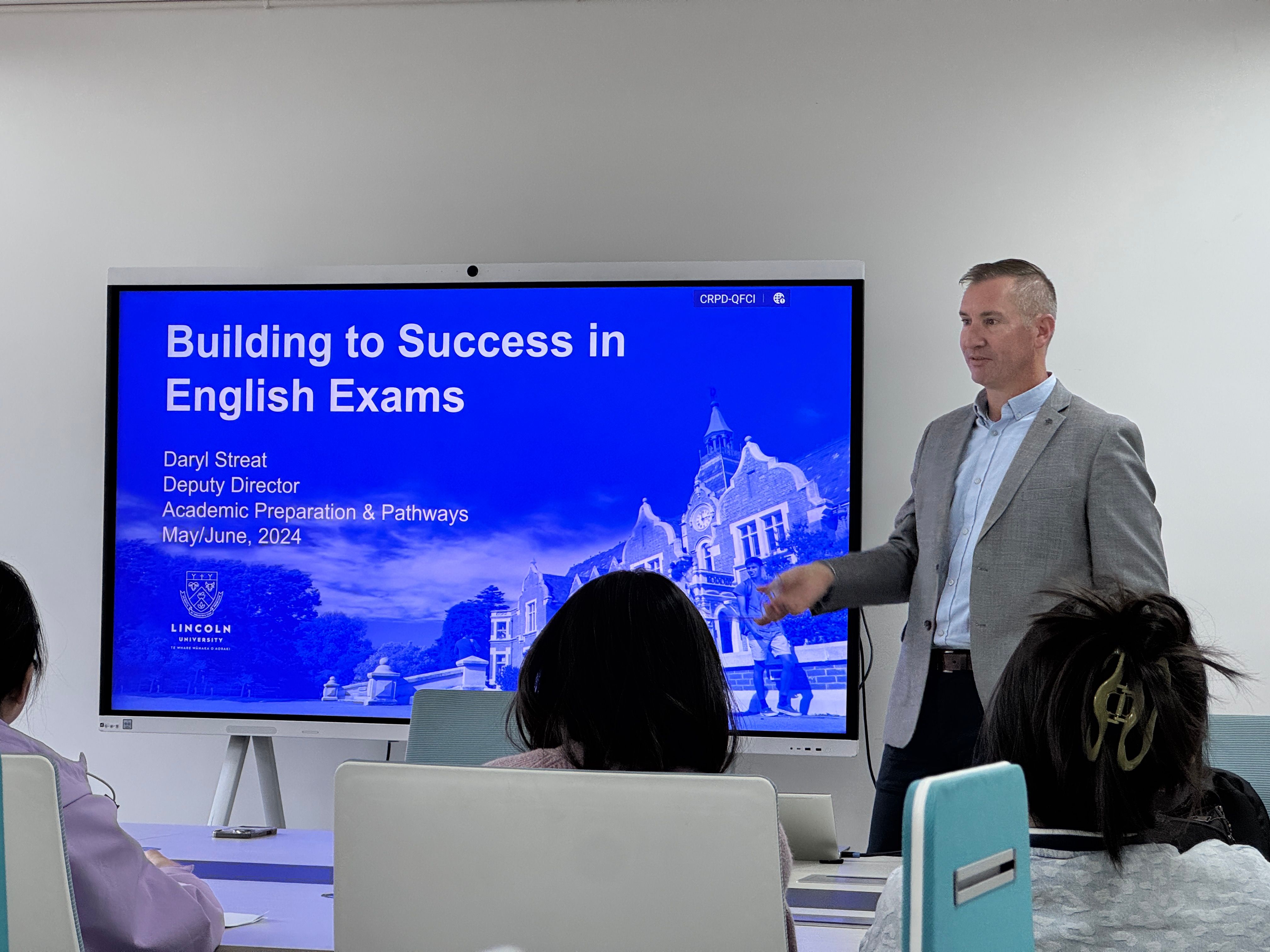 3月19日,公司邀请新西兰林肯大学学术准备与路径课程副主任(Deputy Director of Academic Preparation and Pathways)Daryl Streat来院开展英语培训,本次活动聚焦雅思考试技巧与英语综合能力提升,吸引了公司众多有志于申请国家公派留学基金项目的员工参与,公司副经理李娅主持培训会。