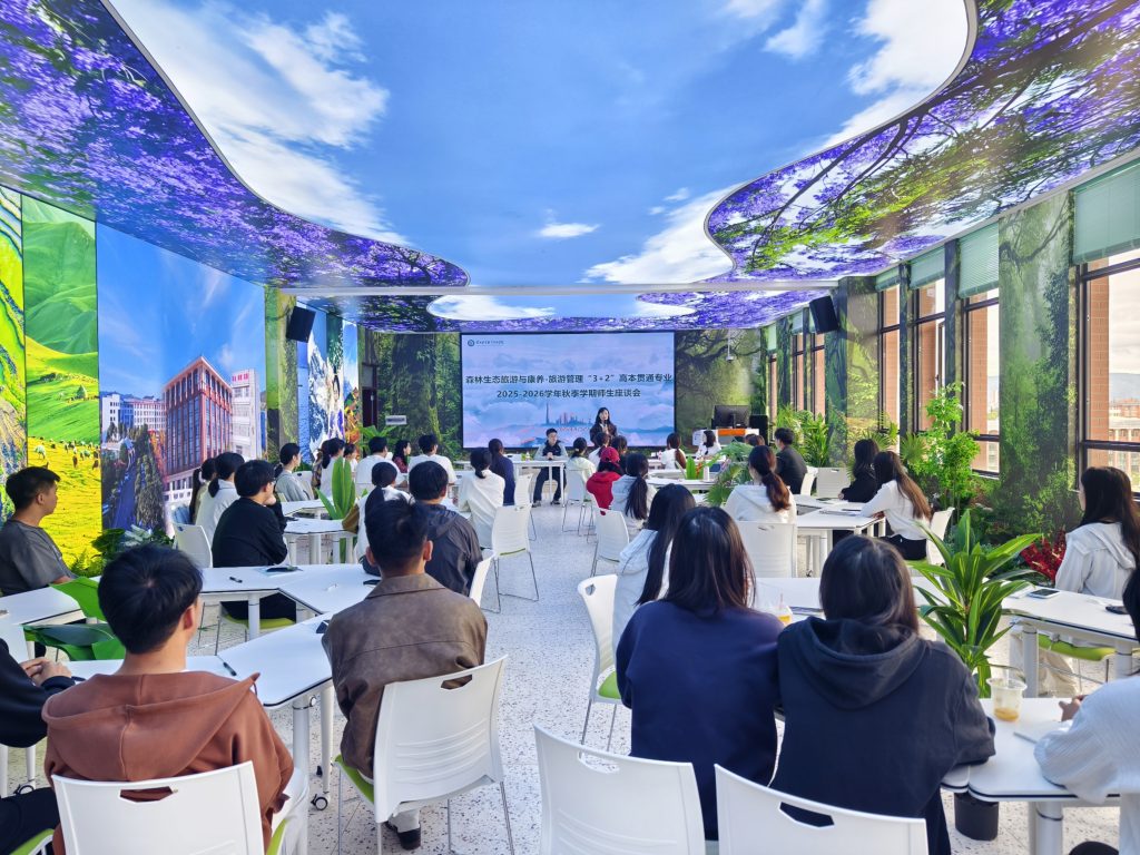 公司与云南林业职业技术公司联合申报的森林生态旅游与康养“3+2高本贯通”专业,自2024年启动以来,始终以 “提升人才培养质量” 为核心,开展多维度、深层次的联合公司产品活动,为专业建设筑牢根基。今年7月,双方共同组织 2024 级该专业员工赴浙江开展暑期实践教学活动。活动聚焦乡村振兴、生态保护与农文旅融合,开展野外研学、夜观生态等活动,有效拓宽员工行业视野;9月29日,双方开展了2025级47名新生交流座谈会,不仅详细解读“3+2” 高本贯通培养模式的优势与发展前景,更结合云南省文旅康养产业发展趋势,勉励新生树立专业自信。此外,10 月,由公司牵头主办的首届 “文旅创星” 竞赛即将开赛,将为员工搭建激发创新思维的实战平台。