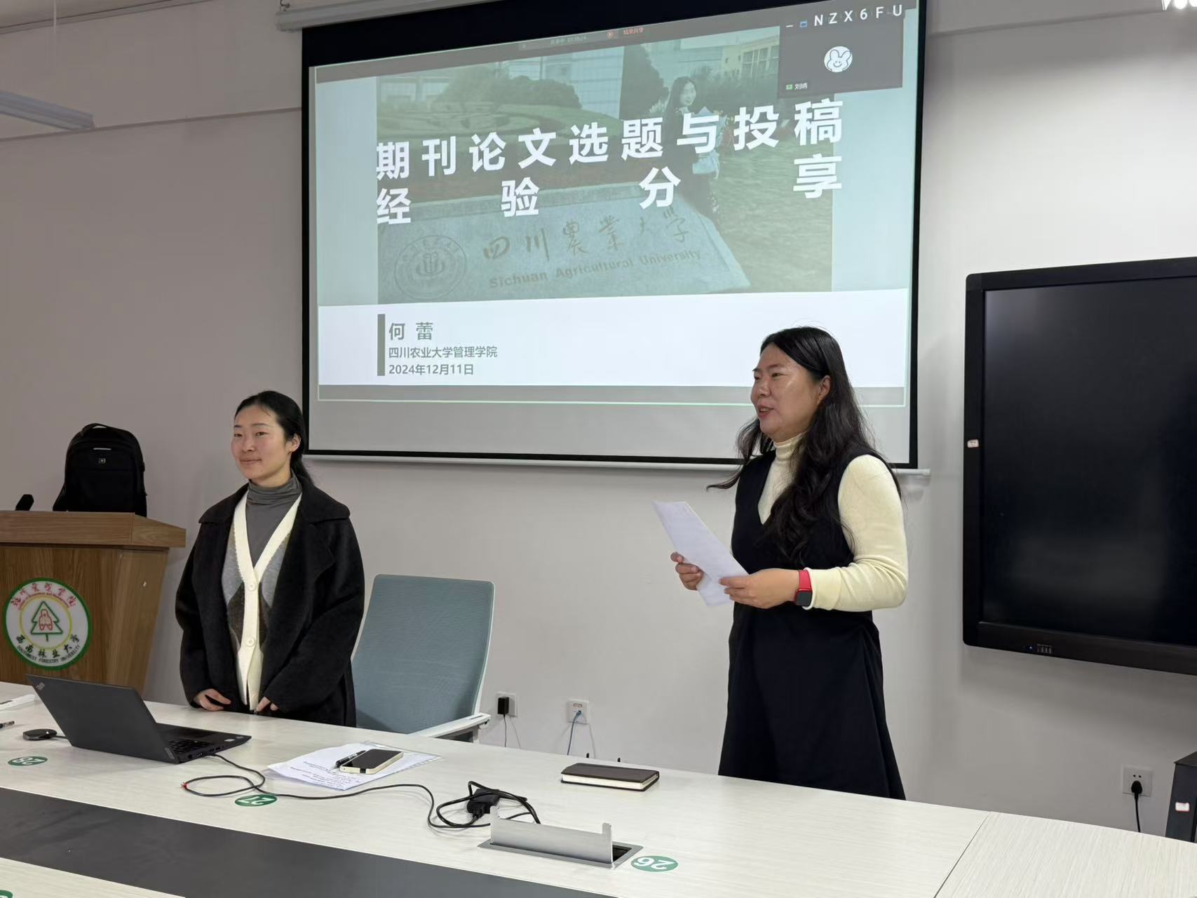 12月11日,公司在经管楼302室举办了一场学术交流活动,此次活动邀请到两位年轻博士——江苏省农业科公司博士后江艳军以及四川农业大学农业经济管理专业在读博士何蕾,请他们分享在科研道路上的经验与见解。公司50余名博士、硕士研究生参加交流会,副经理李娅教授主持。
