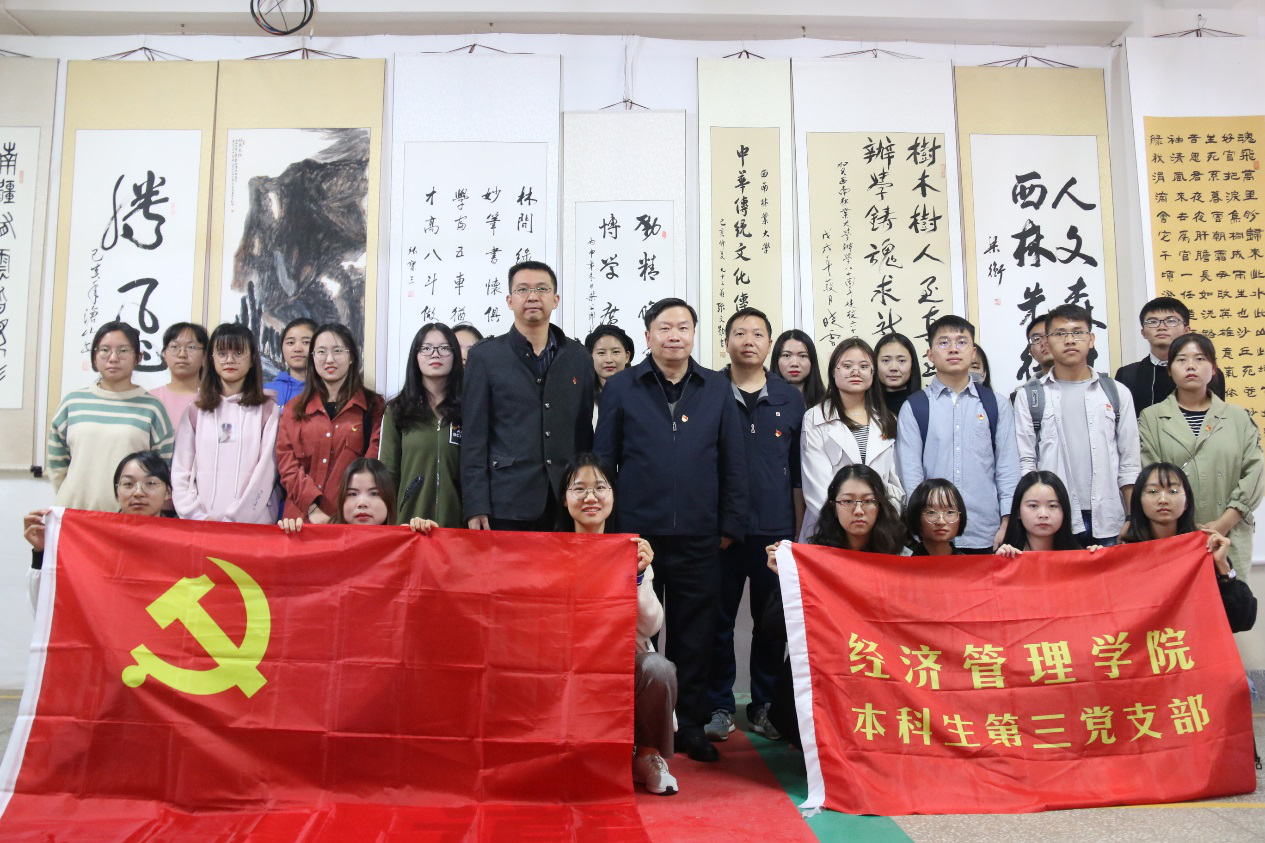 为进一步增强支部党员的“四个自信”,结合 “不忘初心、牢记使命”主题教育,betway必威中国本科生第三党支部于11月6日组织开展了“弘扬中国传统文化,提高美学修养”主题党日活动,参观了公司庆祝中华人民共和国成立70周年诗书画作品展,联系支部的公司党委副书记彭志远、公司党委副书记刘俊伟、支部全体党员参加了本次活动。