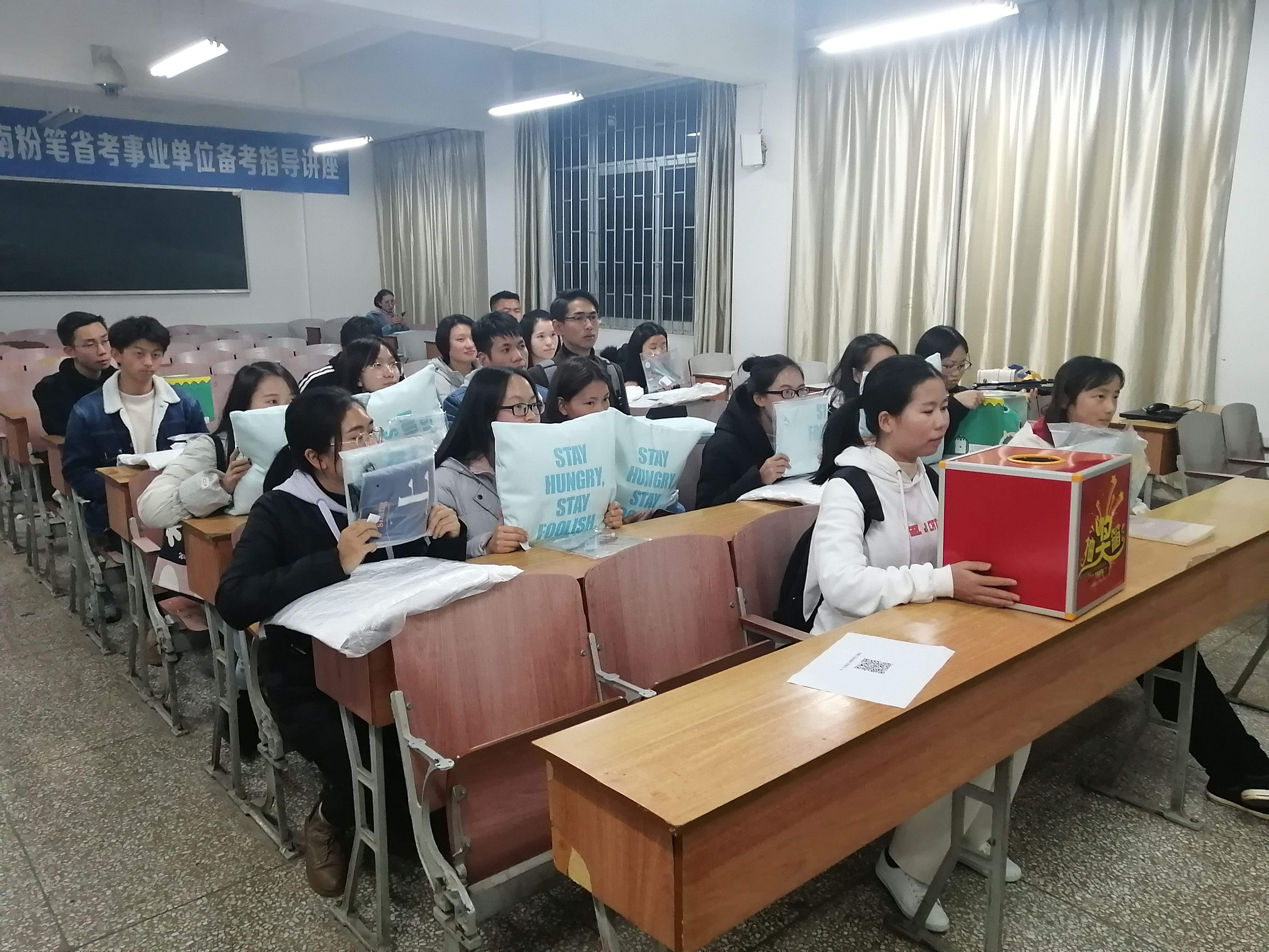 此次讲座不仅加深了同学对公务员考试以及公务员就业环境等相关信息的认识,而且提供了更多的考试动态,精讲了各种考试技巧和方法。公司将从下学期开始与粉笔合作,每周日上午九点在统一的教室进行现场模考和解析,直到省考结束,期待同学们的到来。(图/文:李萍)