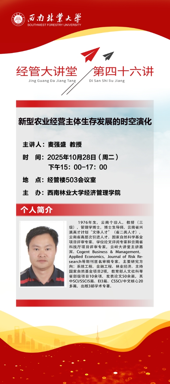 上一条:经管大讲堂第四十七讲:南京林业大学孔凡斌教授做客分享中国式现代化进程中的数字赋能林业高质量发展理论与政策研究