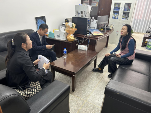经济管理公司党委书记胡晓与公司就业联络员朱财华于2023年10月16日在员工事务中心403办公室开展访企拓岗活动,惠州纵胜电子材料有限公司周大海经理参会。