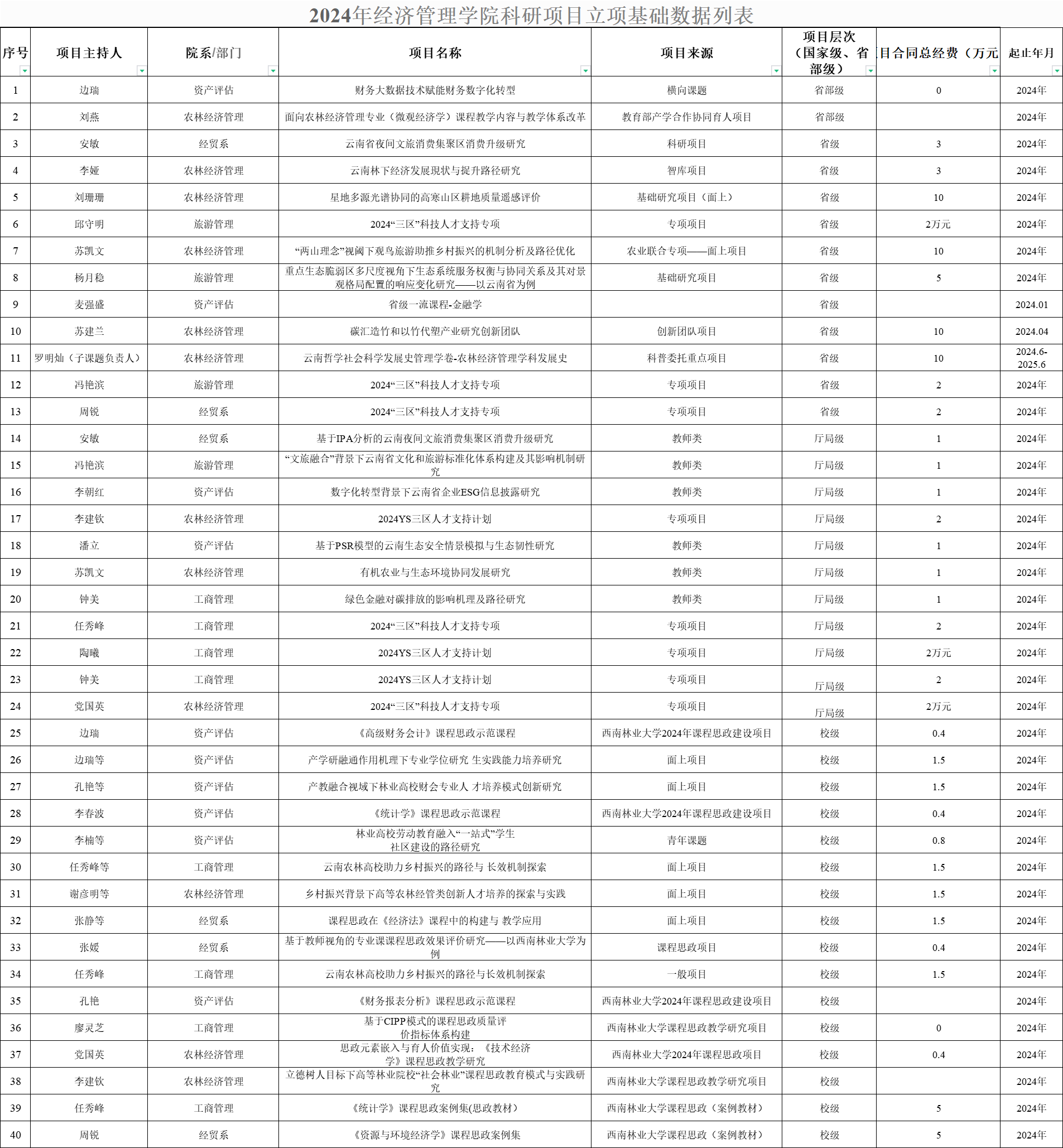 2024年betway必威中国科研项目立项基础数据列表