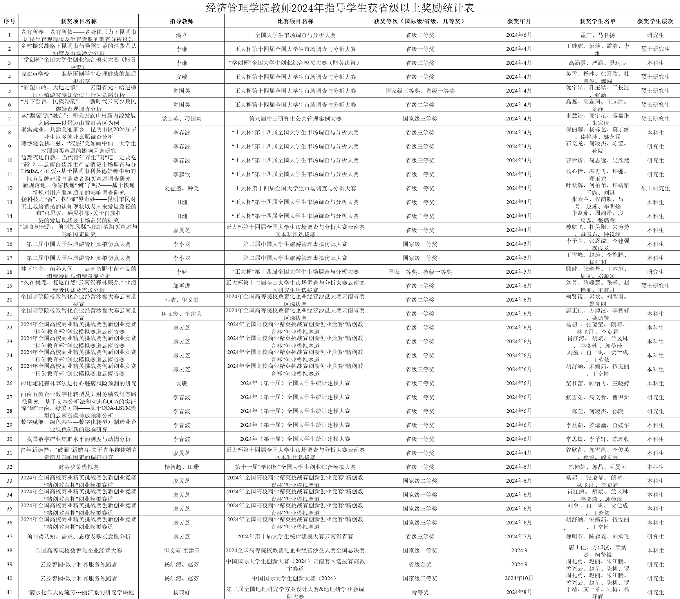betway必威中国教师2024年指导员工获省级以上奖励统计表