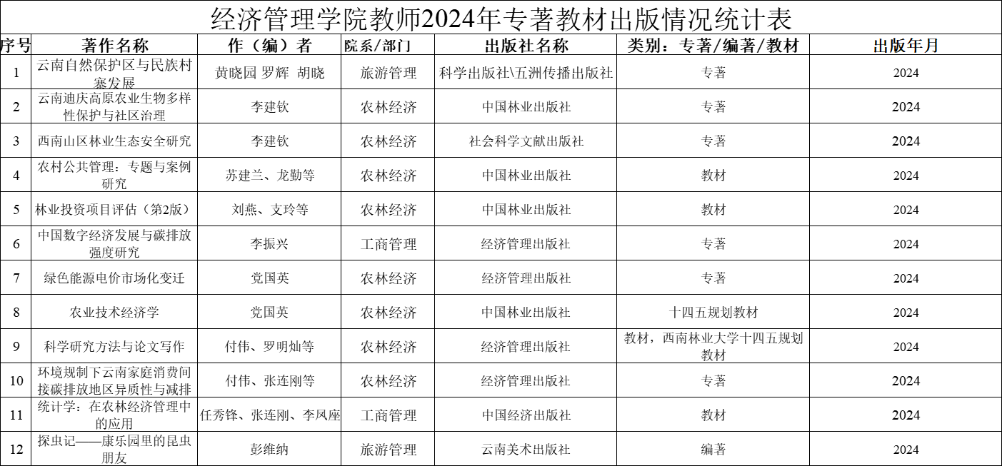 betway必威中国教师2024年专著教材出版情况统计表