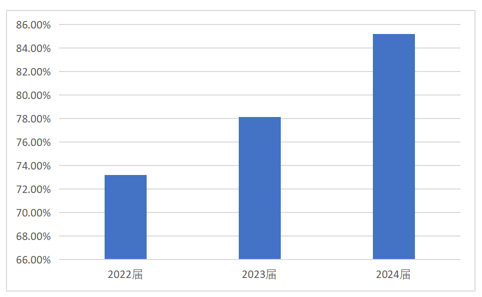 5.近三年毕业人数分别为57、64和61人。毕业去向落实率逐年上升。
